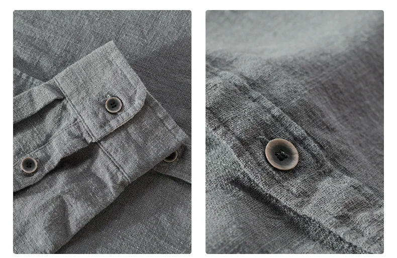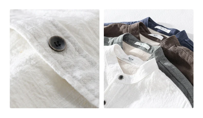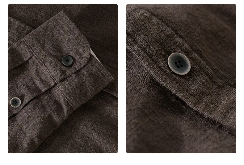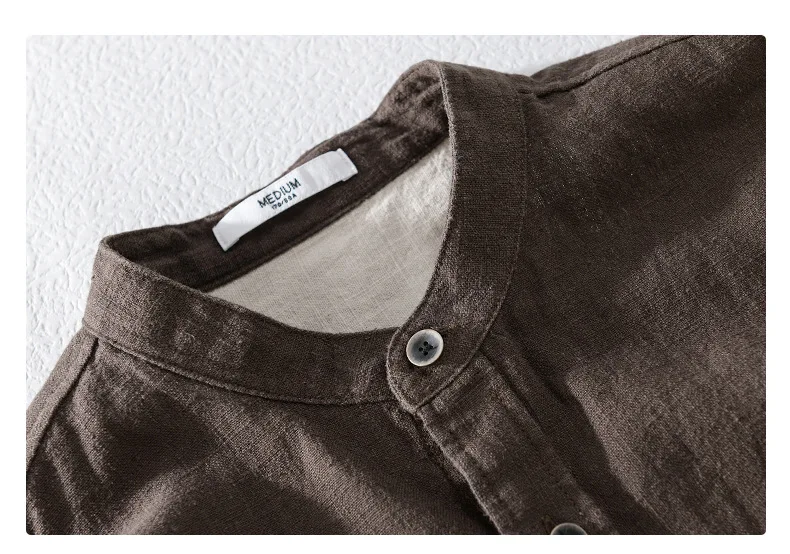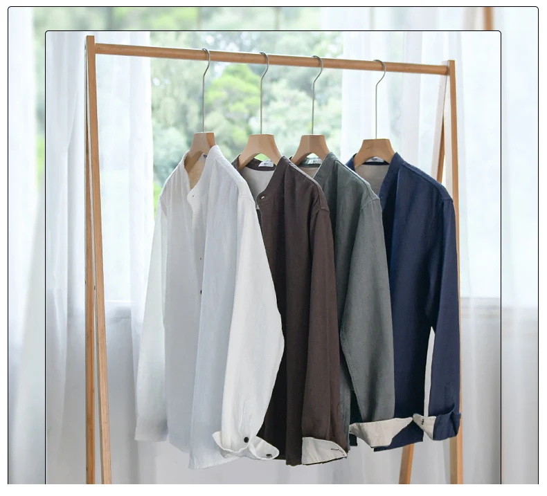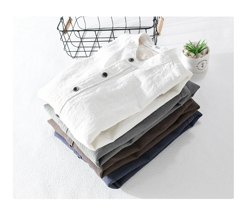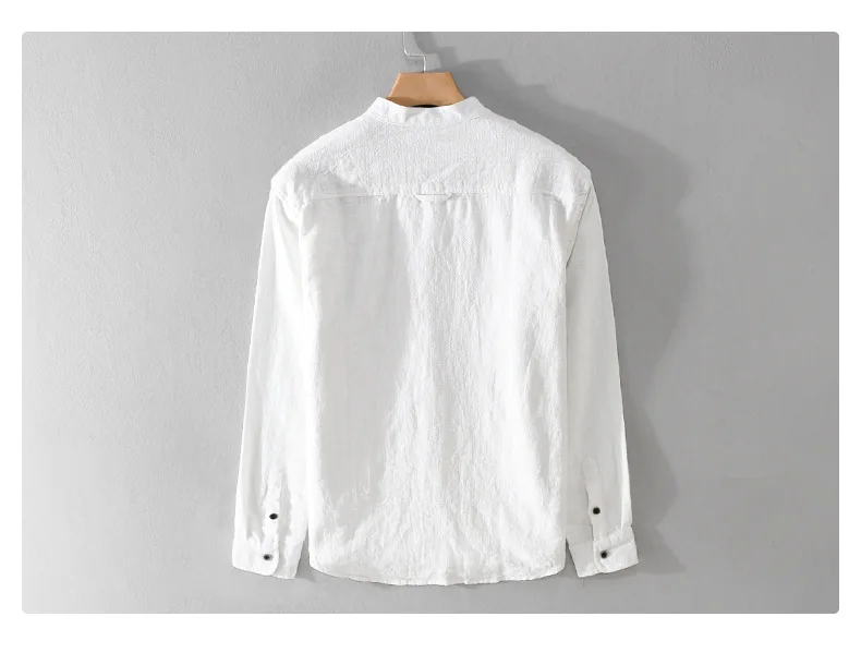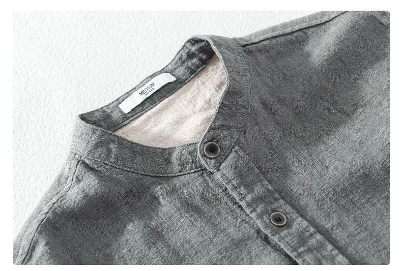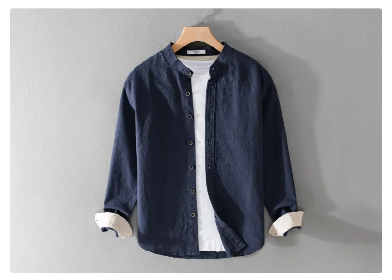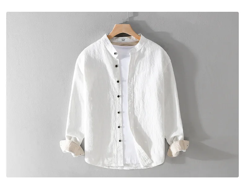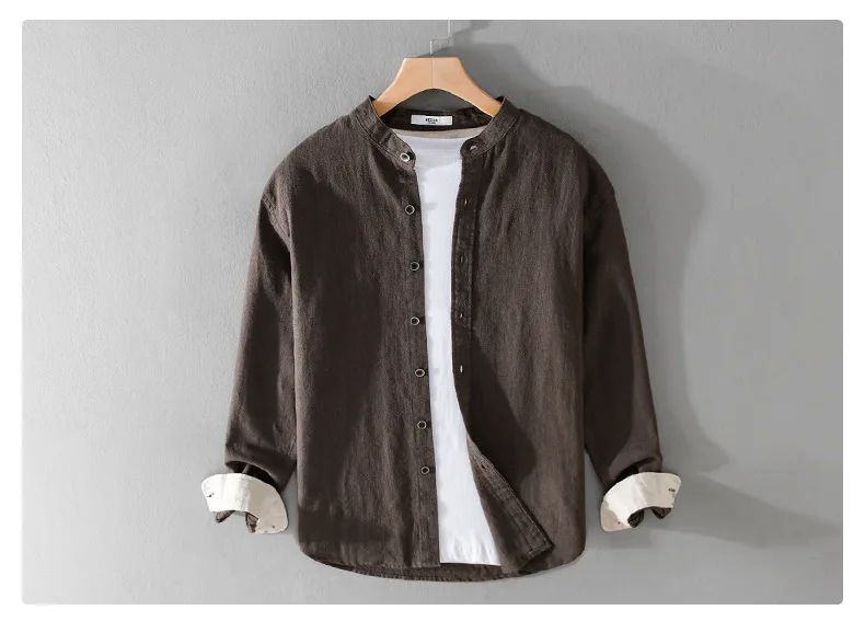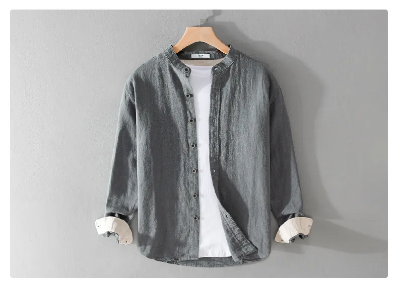 9896 High Quality Men Cotton Linen Casual Shirt Simple Solid Color Stand Collar Long Sleeve Basic Blouse Healthy Cozy Daily Tops