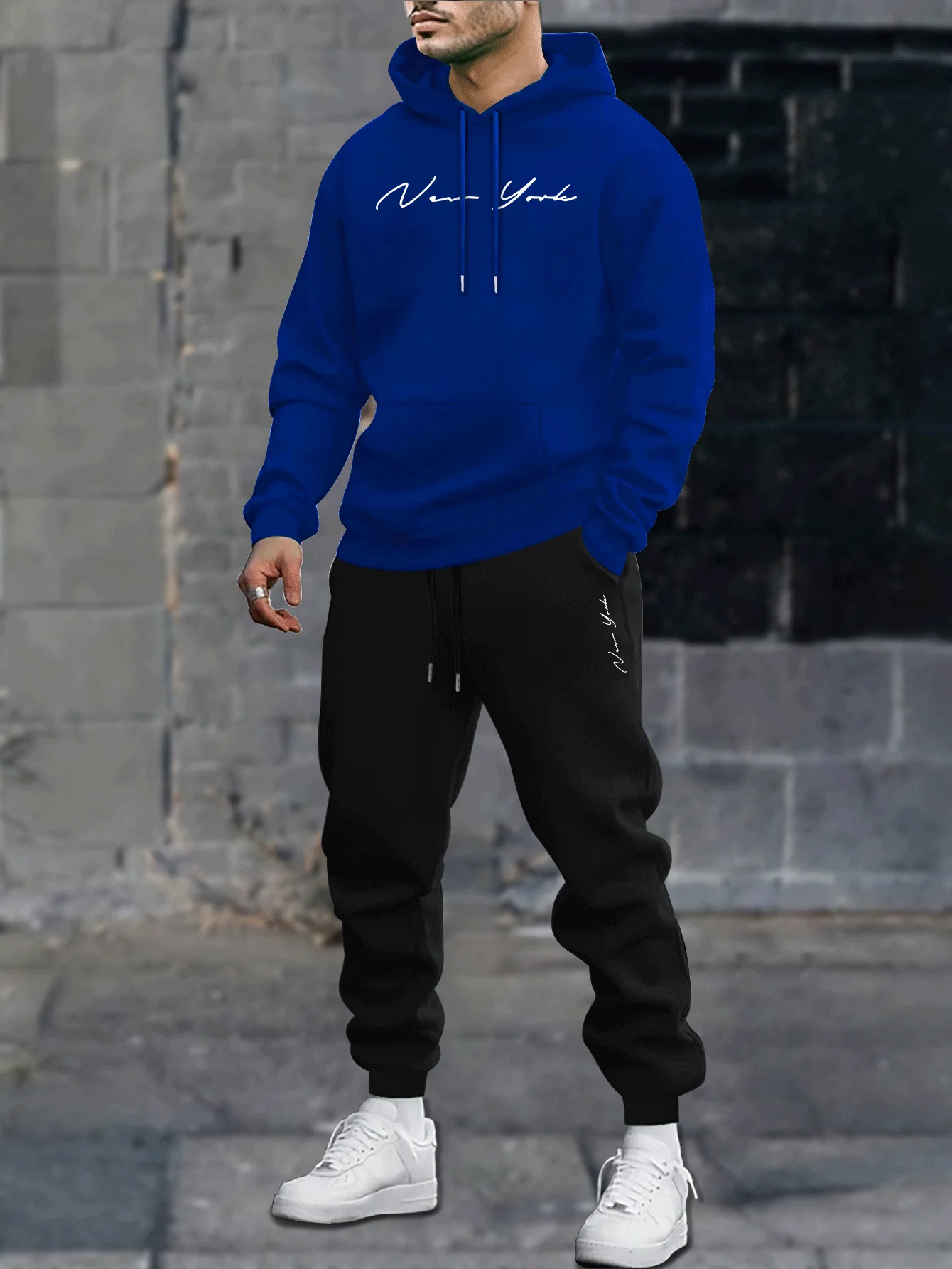 Men's printed hooded sweatshirt and pants set, new winter/spring edition of casual sportswear and lace-up casual pants